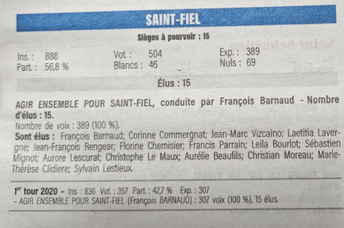 Dépouillement des bulletins de vote des élections municipales. Résultats des élections municipales de la commune.