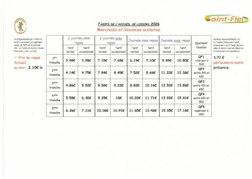 Les tarifs