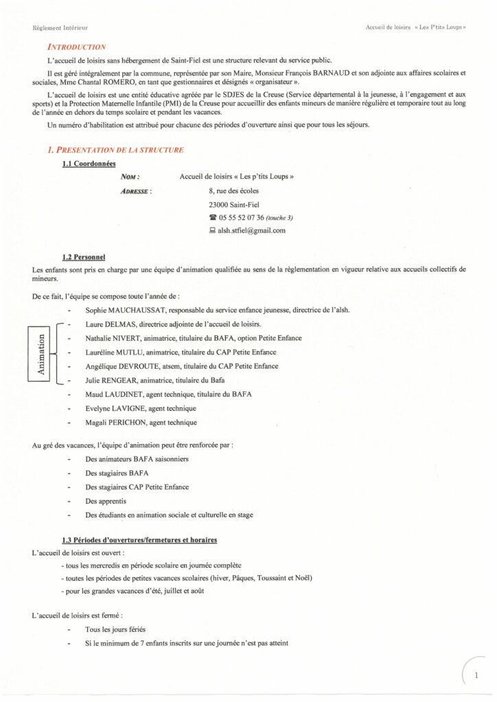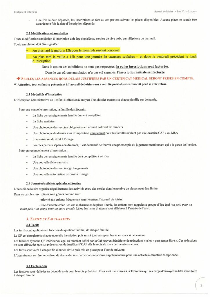 LE RÈGLEMENT INTÉRIEUR