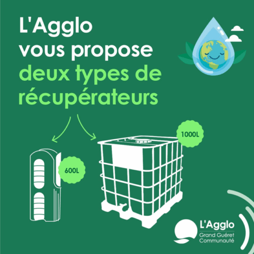 L’Agglo poursuit son opération de vente de récupérateurs d’eau pluviale à tarif subventionné. L’objectif : permettre au plus grand nombre de s’équiper et participer à l’effort de préservation de la ressource en eau. Deux modèles sont disponibles, 1 000 et 600 litres, selon les besoins et l’espace disponible (respectivement à 50 et 60 €). L’offre est limitée à une cuve par abonné.